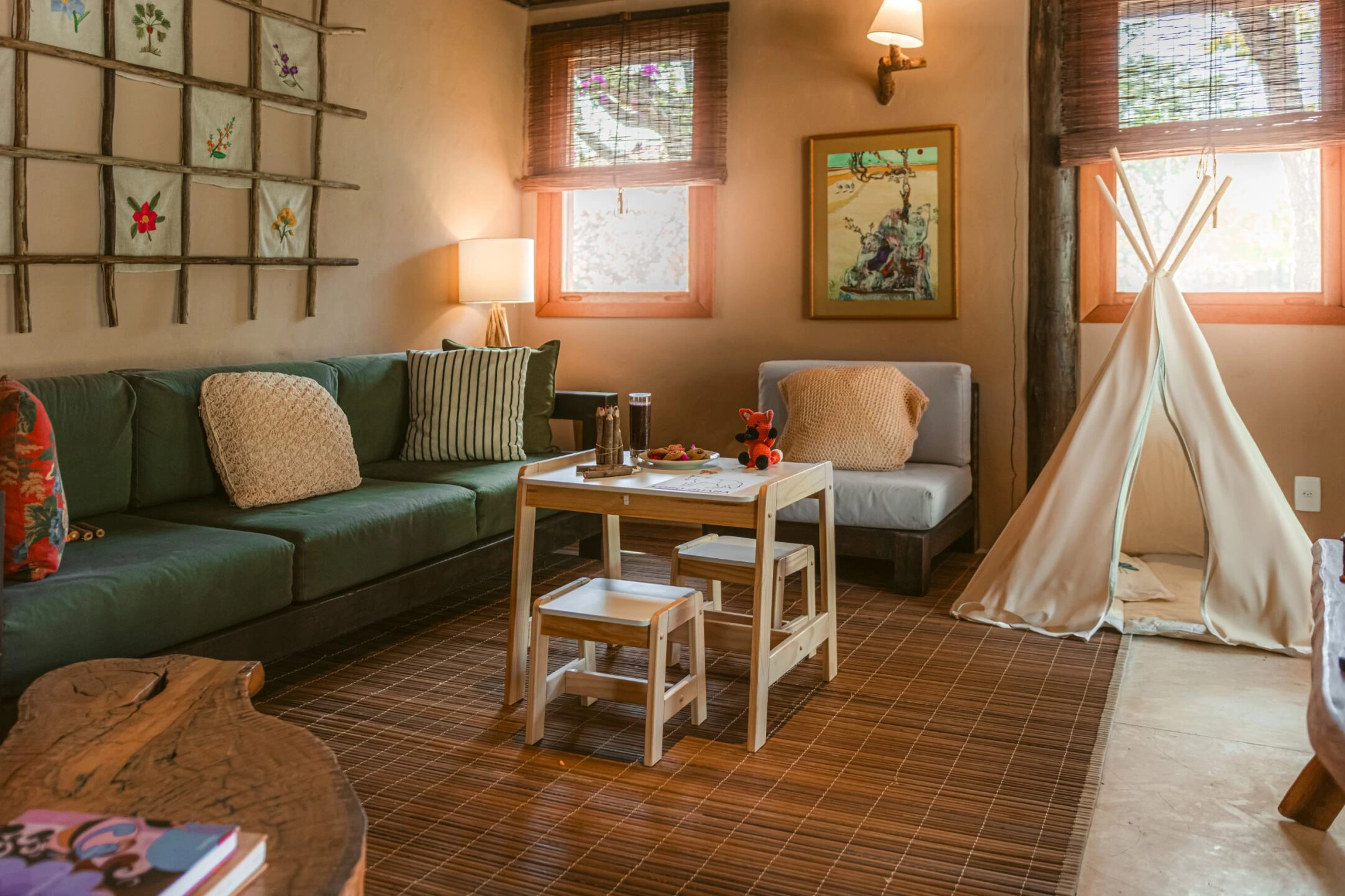 Conforto e sensação de estar em casa, em uma atmosfera integrada ao mundo selvagem lá fora. São apenas sete suítes, que contam histórias por meio de uma decoração rústica. Todas elas amplas, arejadas, confortáveis, silenciosas e equipadas com: cama king size, lençóis de algodão Trousseau, toalhas e roupões Trousseau, ar-condicionado, cofre, frigobar, amenities da da marca Souvie – que são orgânicos e naturais, com as certificações Ecocert Organic Cosmetic e Cosmos Organic.