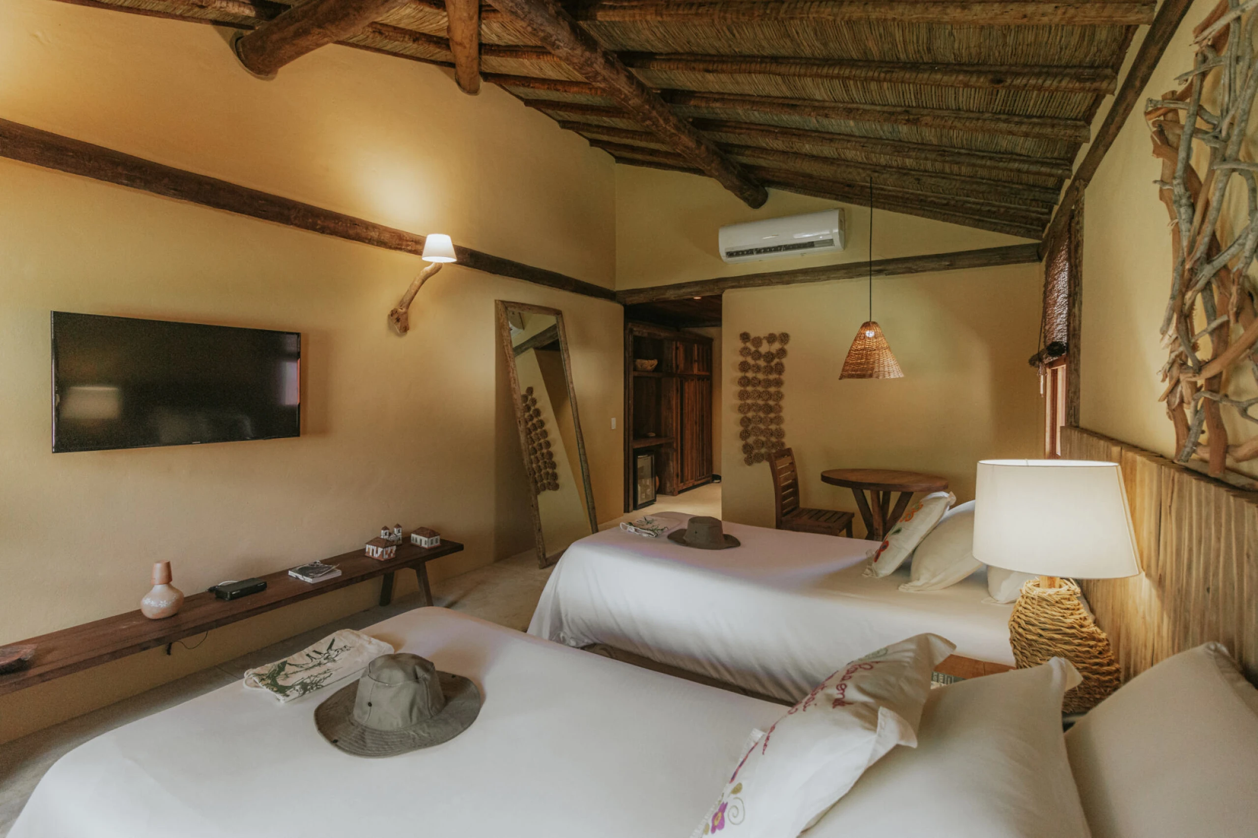 Aqui dentro, 07 suítes e 01 villa amplas e confortáveis, com uma arquitetura integrada ao ambiente, onde o sono reparador é embalado pelo ritmo da natureza.