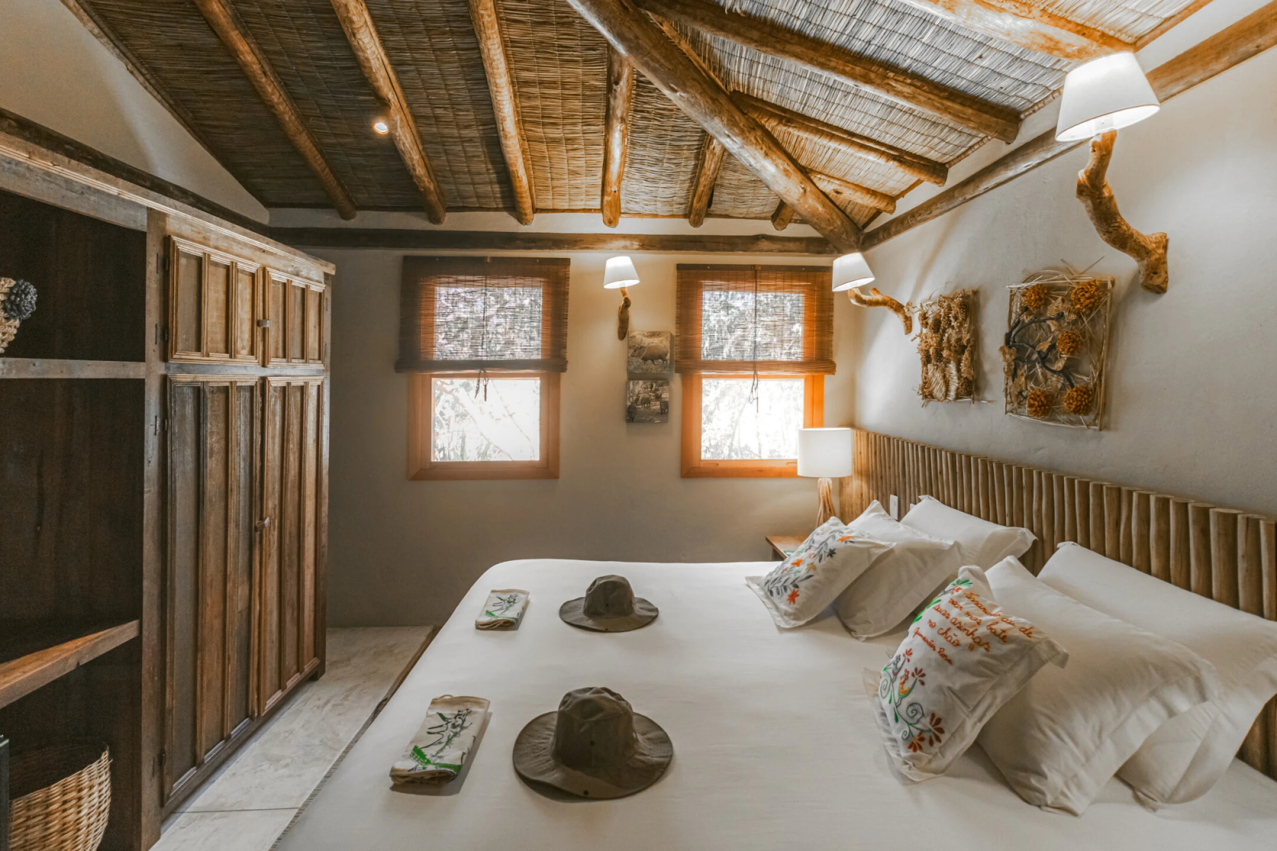 São apenas 07 suítes amplas e silenciosas para um sono verdadeiramente reparador, equipadas e super confortáveis para a família, que contam histórias por meio de uma decoração rústica e integrada ao ambiente.