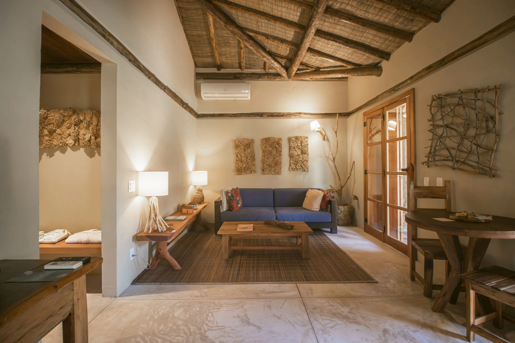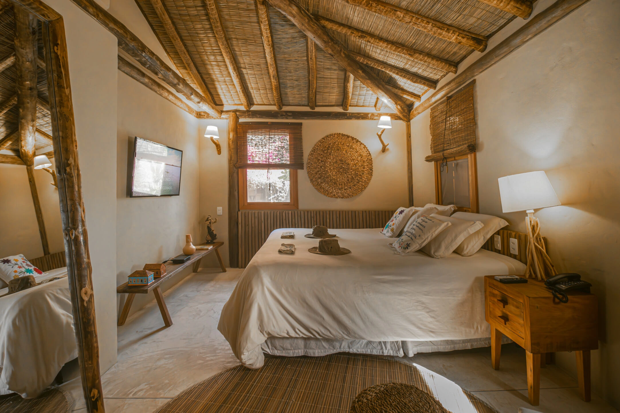 Conforto e sensação de estar em casa, em uma atmosfera integrada ao mundo selvagem lá fora. São apenas sete suítes, que contam histórias por meio de uma decoração rústica. Todas elas amplas, arejadas, confortáveis, silenciosas e equipadas com: cama king size, lençóis de algodão Trousseau, toalhas e roupões Trousseau, ar-condicionado, cofre, frigobar, amenities da da marca Souvie – que são orgânicos e naturais, com as certificações Ecocert Organic Cosmetic e Cosmos Organic.